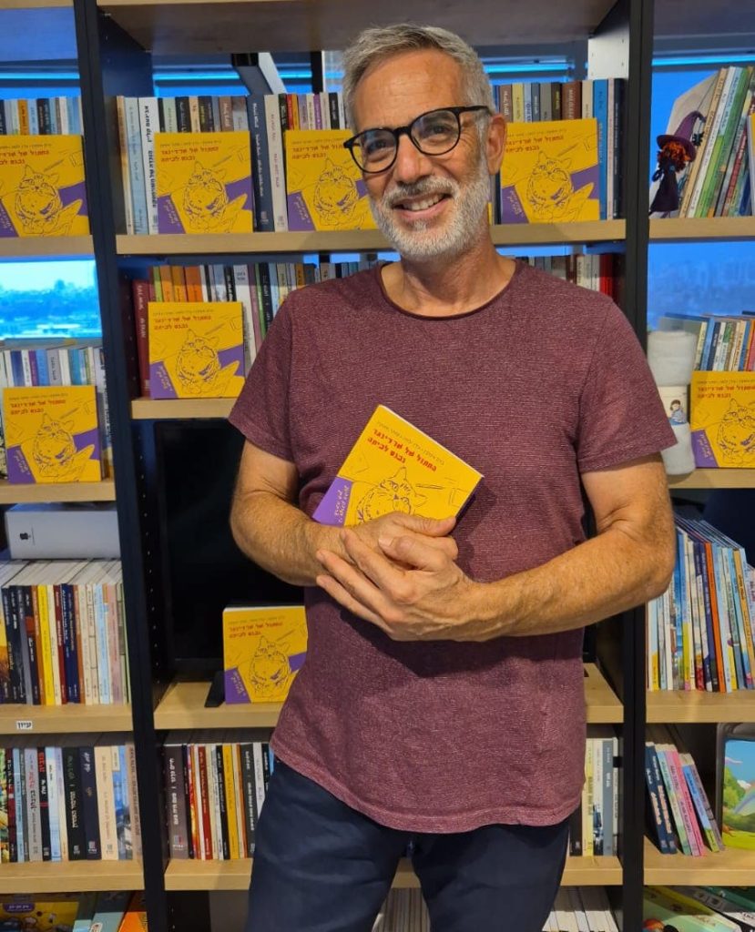 ברק אטקין עם ספרו החתול של שרדינגר נכנס לכיתה, צילום: ספרי צמרת