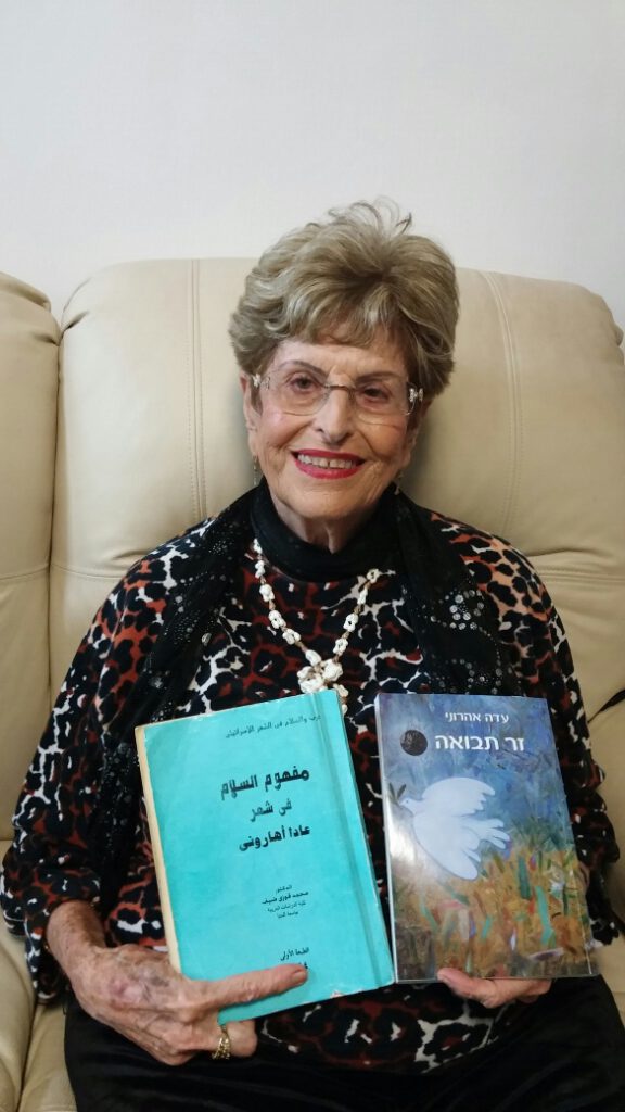 פרופ' עדה אהרוני עם ספרה "זר תבואה" - בעברית ובתרגום לערבית, צילום: פרטי