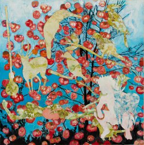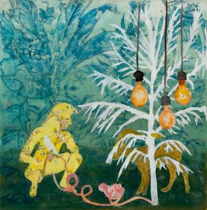 אלה חוקרת את המתח שבין יופי לעקרות, בין דקורטיביות מרהיבה לבין חוסר חיות, ויוצרת אמירה על מציאות עכשווית ועל מרחב ביתי כזירה טעונה רגשית ופוליטית. הקולאז'ים מוציאים אותנו ל'מסע', לא אל טבע ממשי, אלא אל ייצוגים מלאכותיים עשויים טפט, נייר ובד. הסביבה החזותית הנוצרת רווייה בדפוסים חוזרים, מרקמים מגוונים והיא מושכת ובה בעת מותירה חוויה של אי־ודאות. 'העולם' נבנה על ידה בסצנות של "מקום־ לא־מקום" ו"זמן־ לא־זמן": הנופים, האנשים, בעלי החיים והחפצים מתקיימים בסביבה שטוחה, דקורטיבית, חסרת פרספקטיבה מסורתית, אבל תוך חזרה של מוטיבים (האישה הכורעת ללדת, העובר\תינוק המחובר בחוט הטבור, הסוסים, נורות הליבון ועוד) המופיעים בערבוביה עד שמטשטשים גבולות בין פנים לחוץ, מציאות לדמיון, מקור והעתק.
