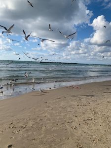עבודות של אלי חכים עוסקות בסצנות בתוך מרחבים כמו ים. הוא מצלם ציפורים בצילום שמזכיר את הסרט "הציפורים" של היצ'קוק  בקומפוזיציה  שמפרה את האיזון ומכניסה לחוסר ודעות לאי-שקט. אניה ליפצר מציירת מסכות ושדים וקוראת ליצירה שלה "השטן הכחול , אני רוצה לראות אותך מחייך" – התרחשות שהיא בעיצומה של הסצנה.