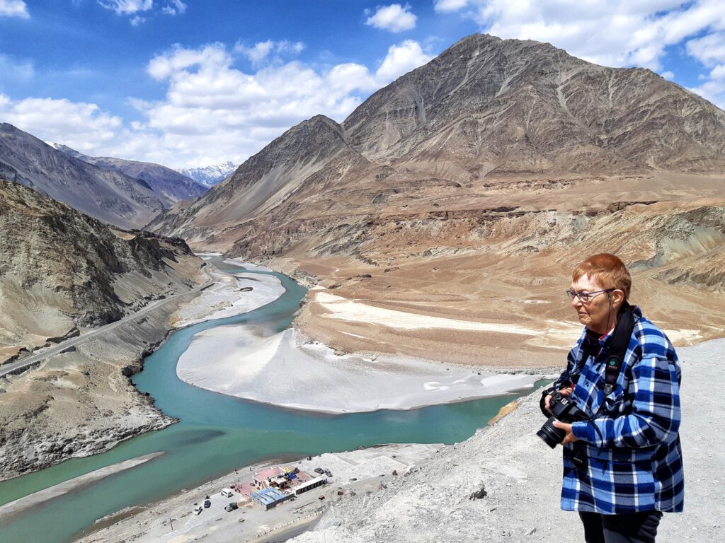 ‏‏ד"ר דרורה בהרל במפגש של הנהרות האינדוס והזאנסקאר, צילום: טאשי