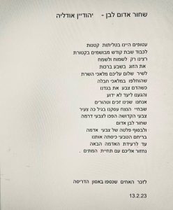 "בתערוכות שאני אוצרת מציגים אמנים מחו'ל, בעיקר מארצות הברית. כיום באמצעות הווטסאפ והרשתות החברתיות אני מלווה את אומנים אלו עד שלב ההדפסה, אך בתערוכה זו איריס כליף, האחראית על קשרי חוץ במגזין האינטרנטי "בכיוון הרוח", חושפת שישה משוררים שקיבלו פרסים עם שירים מרתקים ומגוונים – כל אחד מהם עם שפה ייחודית וחותם אישי הכולל תמונות עולם עשירות ועמוקות. במובן זה במה הזו תארח מגוון רחב של יצירות וכמה משוררים מחו"ל. למי שיגיעו לתערוכה מובטחת חוויה תרבותית עשירה מהוויה הארצישראלית וגם מכמה מדינות ברחבי העולם. זהו קנה מידה בינלאומי ורב-תרבותי שכולנו זוכים בו, ואני קוראת לזה גם מעשה ציוני ואוניברסלי. זה נדבך נוסף וחשוב בכול תערוכה ובפרט בתערוכה זו – האמנות היא במה לחופש ביטוי ולדמוקרטיה. היוצרים מהווים מעין תזמורת מופלאה והם יספרו ויציגו את עולמם כביטוי רחב ועמוק של חופש וחרות. המלחמה על ארץ זו ועל התרבות היא על דמוקרטיה על חופש ביטוי ועל הוויה המאחדת עולמות שונים במרקם החברתי ישראלי".
