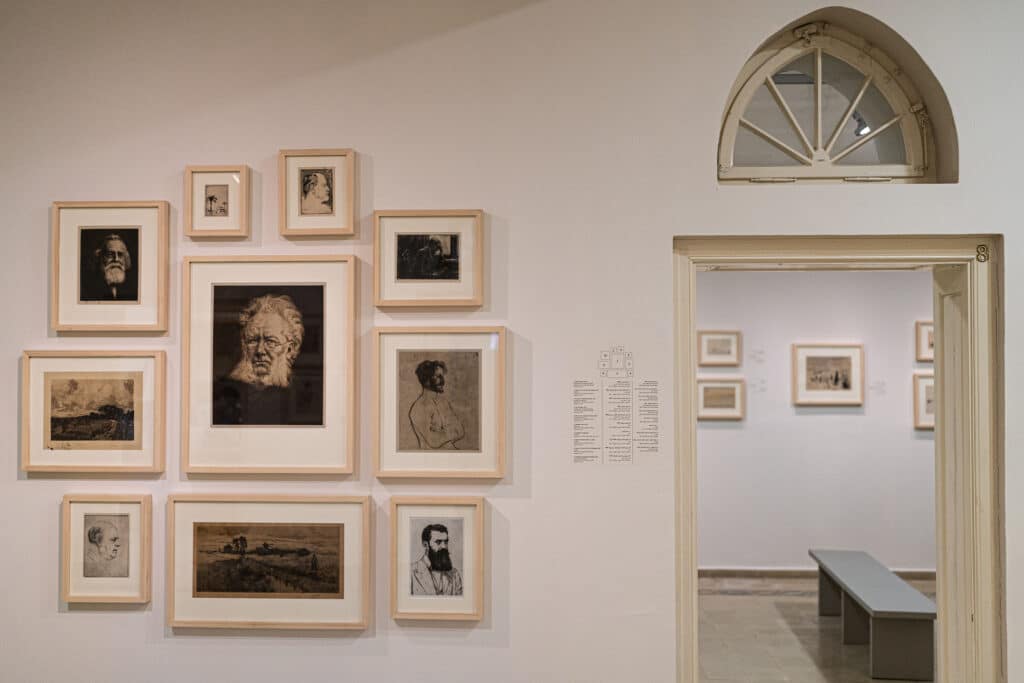 התערוכה משקפת את התמקדותו של שטרוק בדיוקנאות ובתיאורי נוף. התצוגה כוללת דיוקנאות של אנשי מדע ורוח מהתרבות היהודית והעולמית, אלבום המתאר שבויי מלחמה מימי מלחמת העולם הראשונה, הדפסי נופים ממסעותיו בארץ ובעולם, ועוד. לעומת הדיוקנאות, המתאפיינים במבט הבוחן מקרוב ובפרטנות את דקויות המבע, תיאורי הנוף מתאפיינים בתיאור פנורמי יותר, במבט מרחוק, בקווים עדינים ומאופקים ולעיתים ברוח פסטורלית. מכלול זה משקף את נטייתו של האמן ליצור את עבודותיו בעקבות מפגש ישיר עם מציאות החיים שסביבו.