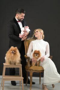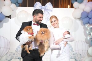נגיעה יוצאת דופן ומשעשעת באירוע סיפקו שתי כלבות הפומרניאן של בני הזוג, דייזי וסנדי, שליוו את הרך הנולד לטקס ושימשו כ"שושבינות האירוע", וקיבלו לא מעט תשומת לב מהאורחים.