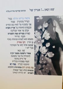 וְיַתִּיר וִיכַסֶּה בִּי קוֹל דַּעַת בַּת אֱלוֹהִים שִׁירַת רוּחַ הַאִירִיס וְיִשָּׂא בְּגוּפִי לַחַן פִּיּוּט עוֹלָמוֹת בְּאֶרֶץ צְבִי וּבַחֶסֶד בַּת אִירוּסא אַדְמַת שָׁמַיִם וּבְקוֹל חַי שׁוֹפְרֵי אָדָם רוּחַ אֱלֹהַּ חַוָּה הָאַהֲבָה.