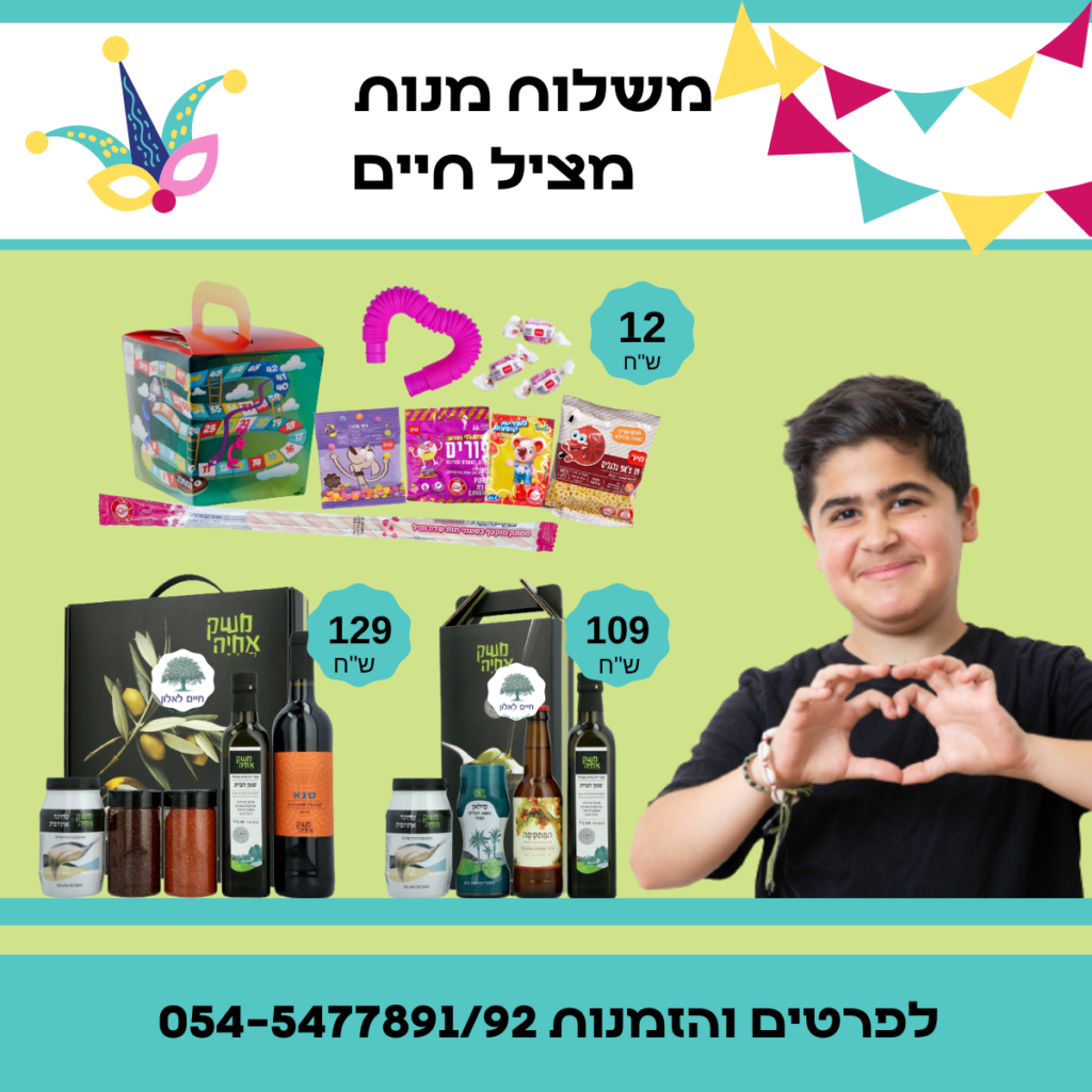 כל הפרטים על מגוון המארזים לפורים הנמכרים על ידי עמותת "חיים לאלון":