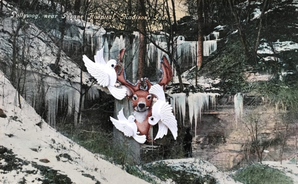 התערוכה "הורוטופיה" של האמנית נלי אגסי, אמנית רב-תחומית, מורכבת ממיצב ווידאו המתפרש על פני חמישה מסכים ושתי סדרות של עבודות נייר בטכניקת קולאז'. העבודות צולמו ביערות ובפארקים יפהפיים המזכירים את הגנים שעוטפים את ארמון ורסאי, אך למעשה, אלו אתרים במערב התיכון האמריקאי בהם פעלו בתי חולים פסיכיאטרים. המפגש בין הטבע המפואר ובין ההיסטוריה הטעונה מייצר תחושה של סוד מאיים.
