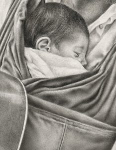 התערוכה אותה יצרה גלעד עובדיה, ברגישות מופלאה, עוסקת בלכידת הזמן ברמותיו המזוקקות ביותר. בציור היפר-ריאליסטי, כל פרט – ולו הזעיר ביותר – מקבל משמעות, וכל משיכת עיפרון או מכחול הופכת לשבריר מציאות. כך, הרגעים המונצחים כאן אינם רק זיכרונות, אלא פירוק מדוקדק של הזמן עצמו, עד לרסיסים קטנטנים של אור, מרקם ותנועה.