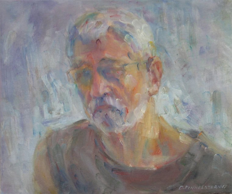 פינקלשטרן: "במשך שנים הצגתי יצירות רבות בתערוכות קבוצתיות וראיתי מספיק את עצמי על הקירות עם אומנים אחרים. כעת אני מתרגש כי זו פעם ראשונה שהיצירות שלי מוצגות בתערוכה יחיד משלי. בגיל 80 הגיע הגיל והגיע הזמן לכך לאחר שהבנתי שאני צריך להציג את עצמי בתערוכה, כי אם לא עכשיו אז מתי? כבר מזמן אמרו לי בני המשפחה הקרובה והחברים שאני צריך תערוכת יחיד".