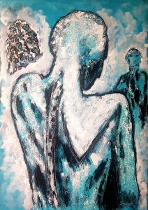 I am fascinated by Kafka’s world where it is impossible to take a step without stumbling or becoming confused, a world in which our inner perfection helps us survive. This world of blurred borders, where objects appear in mysterious ways, inspired me to capture dreams, ideas, emotions, magical powers and light on canvas. Kafka's texts are full of predictions and anticipations. Hopeless things are broken or carried away by the wind. Some people are brought down, some are crowned, and some are lost and never found. Kafka believed that, when climbing to a great height, one could suddenly enter the radiance of the distant sun. My artwork moves between reality and imagination, combining knowledge and emotion. I have tried to express my astonishment at the particles of light in the bottomless darkness of chaos, where spirit, sadness, and faith intermingle. I am convinced that even a small spot of light can dispel the darkness that surrounds and inhabits us.
