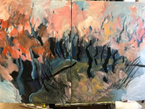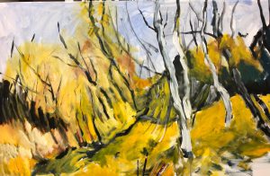 "מאז ומתמיד אהבתי לצייר את כל סוגי הנופים, אבל בתערוכה החדשה אני מציגה רק עצים. בשנים האחרונות ציירתי על בדים ציורים של עצים בגובה של מטר אבל ברוחב שונה. בתערוכה אני מציבה אותם זה ליד זה, במטרה לתת לקהל תחושה של צפיפות כמו ביער", היא אומרת.